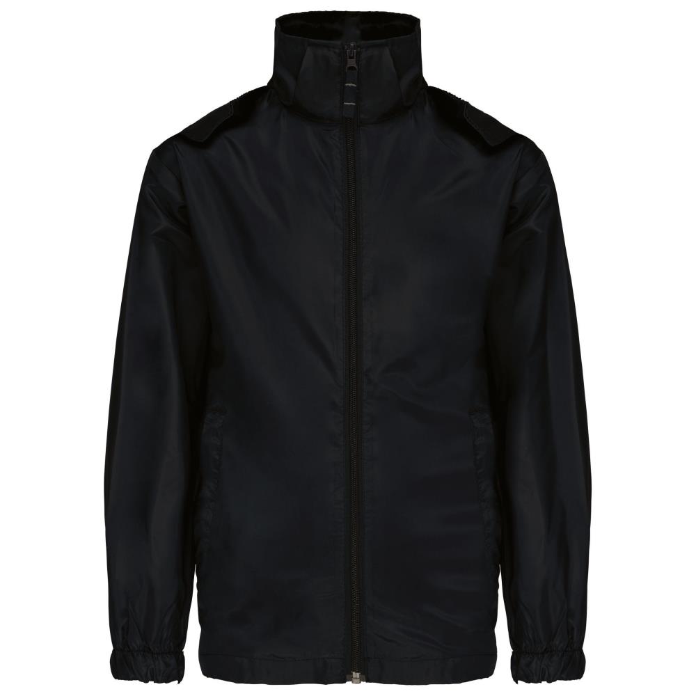 100% polyester. Toon op toon ritssluiting. Capuchon in de kraag met klittenbandsluiting. 2 voorzakken met ritssluiting. Elastische mouwuiteinden. Opvouwbaar volgens het K-Way® systeem.