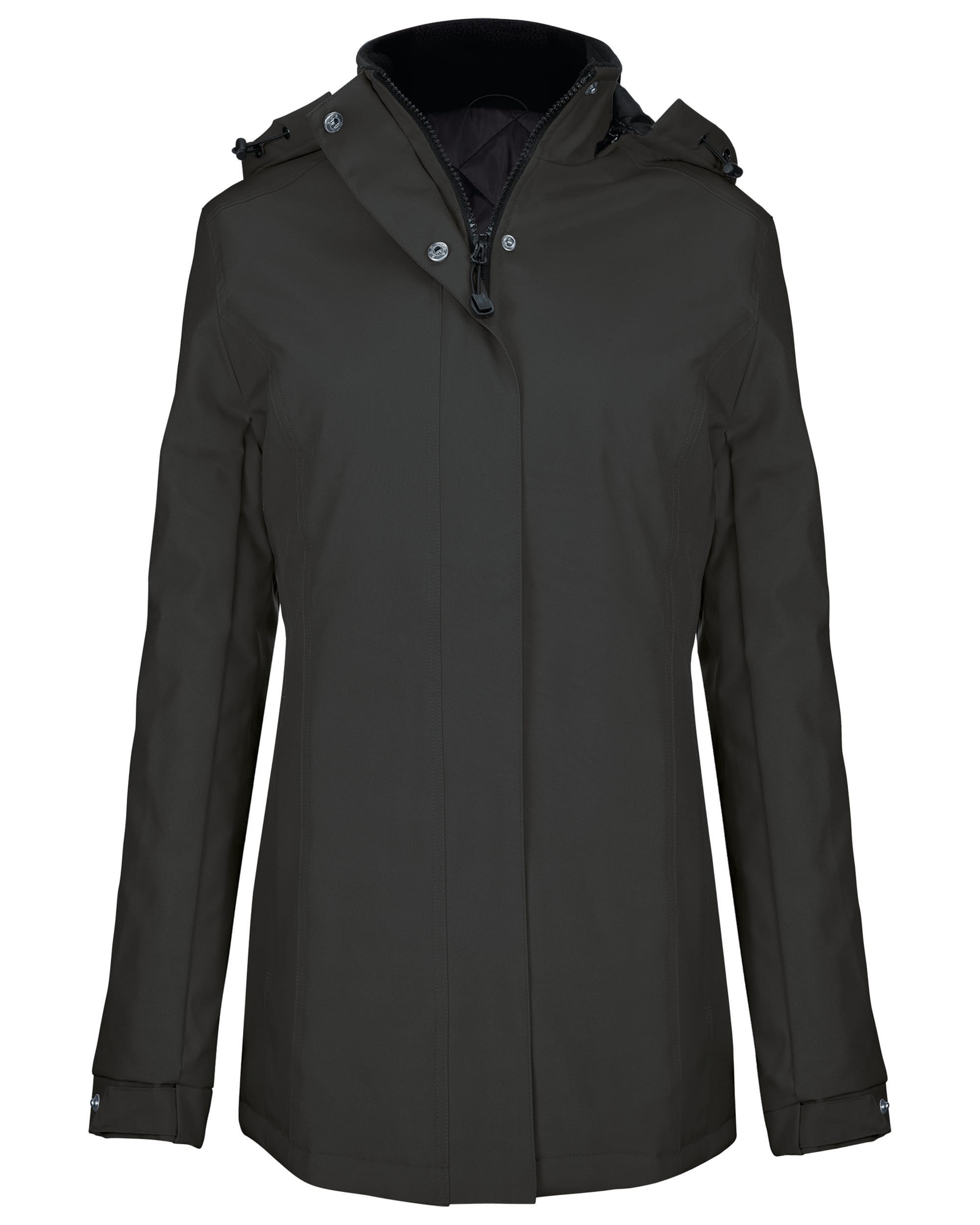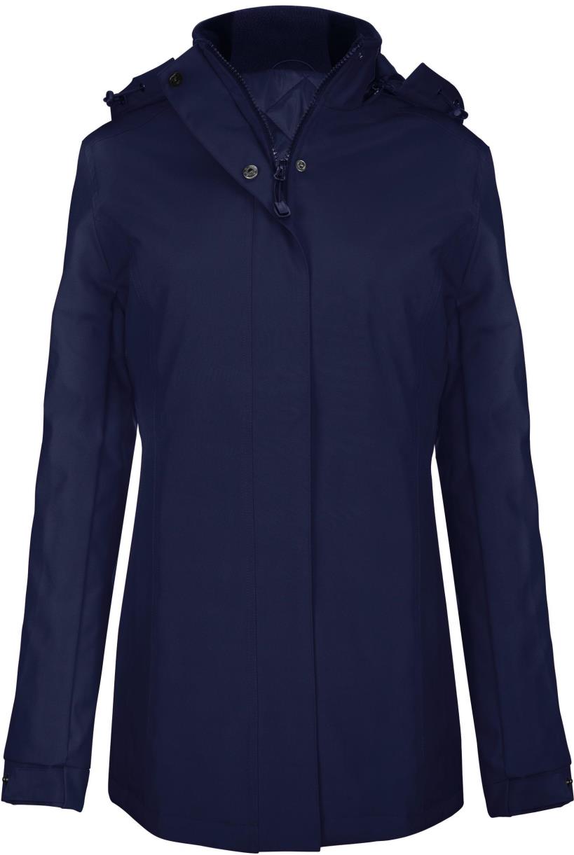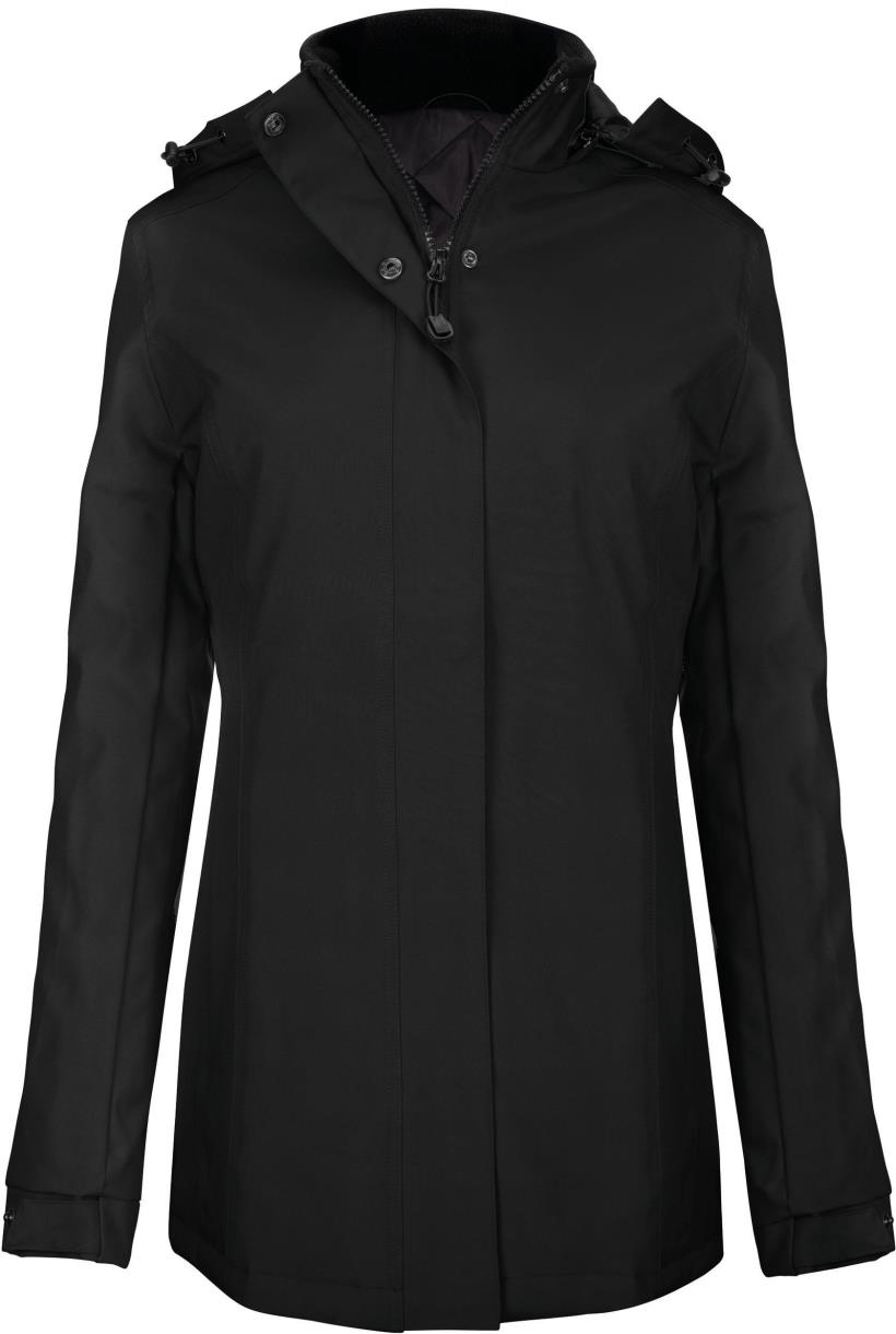 Buitenkant: 100% oxford polyester. Binnenkant: gewatteerde polyester. Ritssluiting met overslag en onzichtbare drukknopen. 2 ritszakken aan de buitenkant. 1 binnenzak. Afneembare capuchon. Kraag met fleecevoering. Drukkersrits.
