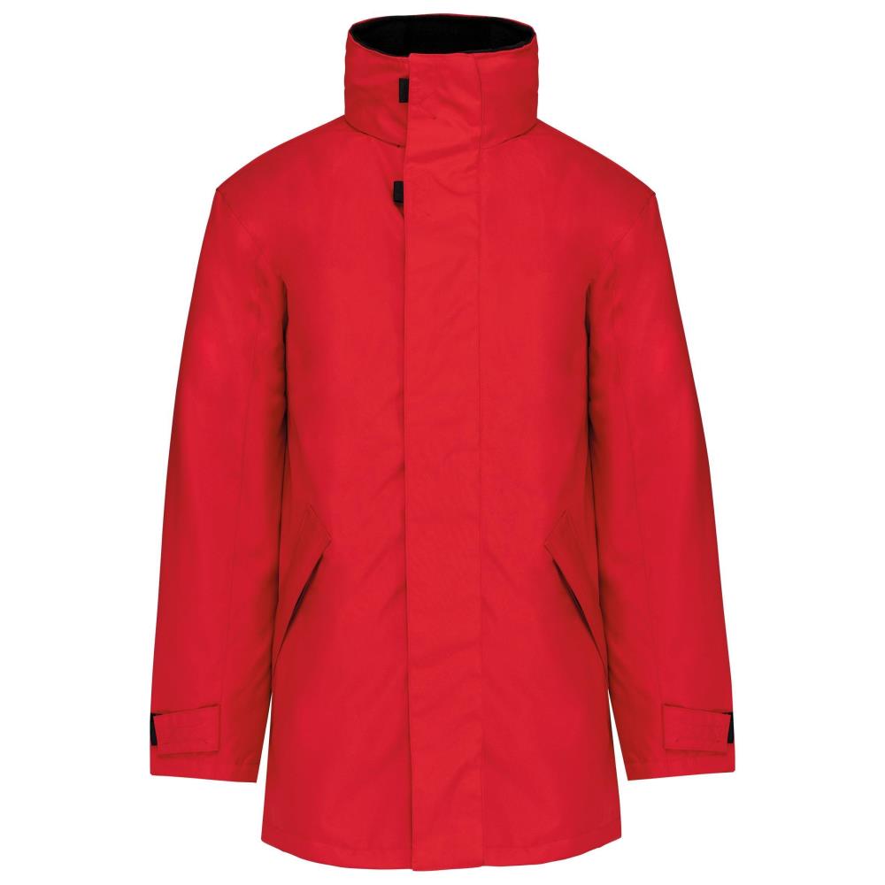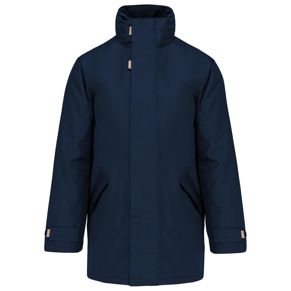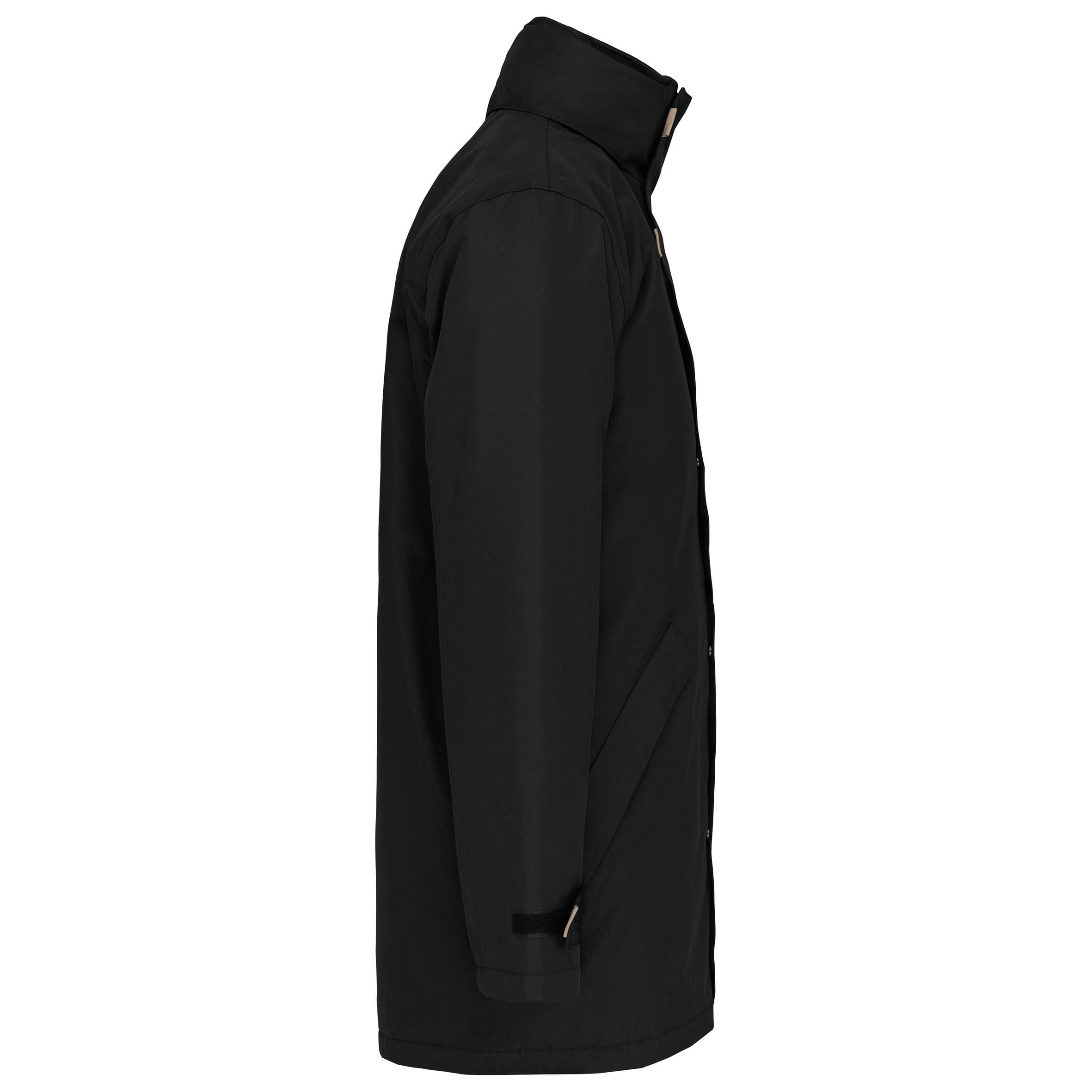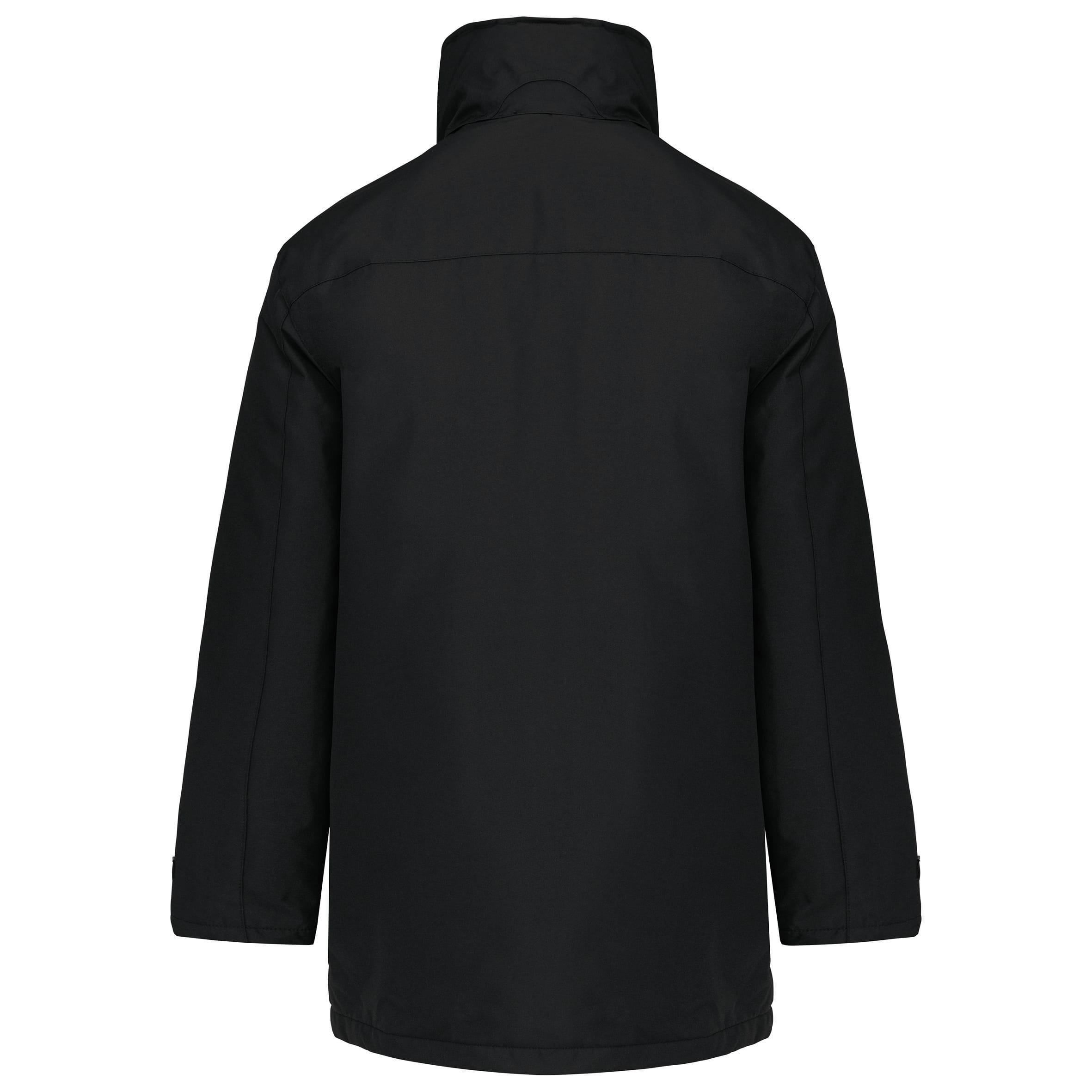 Buitenkant: 100% oxford polyester. Binnenkant: gewatteerd polyester. 2 voorzakken met rits. 2 binnenzakken waarvan 1 voor de GSM. Afneembare capuchon in de kraag. Kraag gevoerd met fleece. Drukkersrits. Waterdichte naden. Ritssluiting verborgen onder een lijst met drukknopen en klittenband. Verstelbare mouwuiteinden.