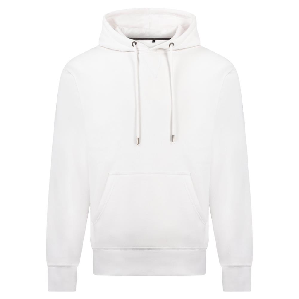 - Duurzame 280-grams hoodie, vervaardigd uit 70% voorgekrompen katoen en 30% gerecycled polyester.