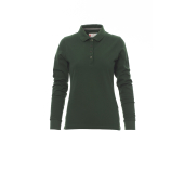 Nauwsluitend damespoloshirt met lange mouwen met 4 bijpassende knopen met parelmoereffect, ribkraag en ribboorden aan de mouwen, zijsplitten, verborgen stiksels bij de kraag met contrasterende band, elastische naden, versterkingsband aan de zijkant, band aan de binnenkant van de nek.