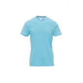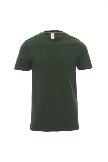 Heren-T-shirt met korte mouwen en ronde hals, met afgezette geribde halsrand van 1,5 cm van een mix met spandex met stiksel aan de buitenkant, contrasterende versterkingsband van schouder naar schouder zichtbaar aan de binnenkant van de nek, elastische naden, zijnaden.