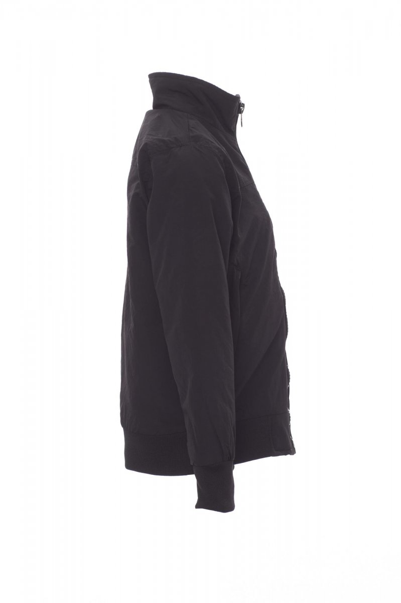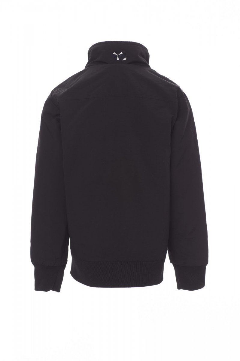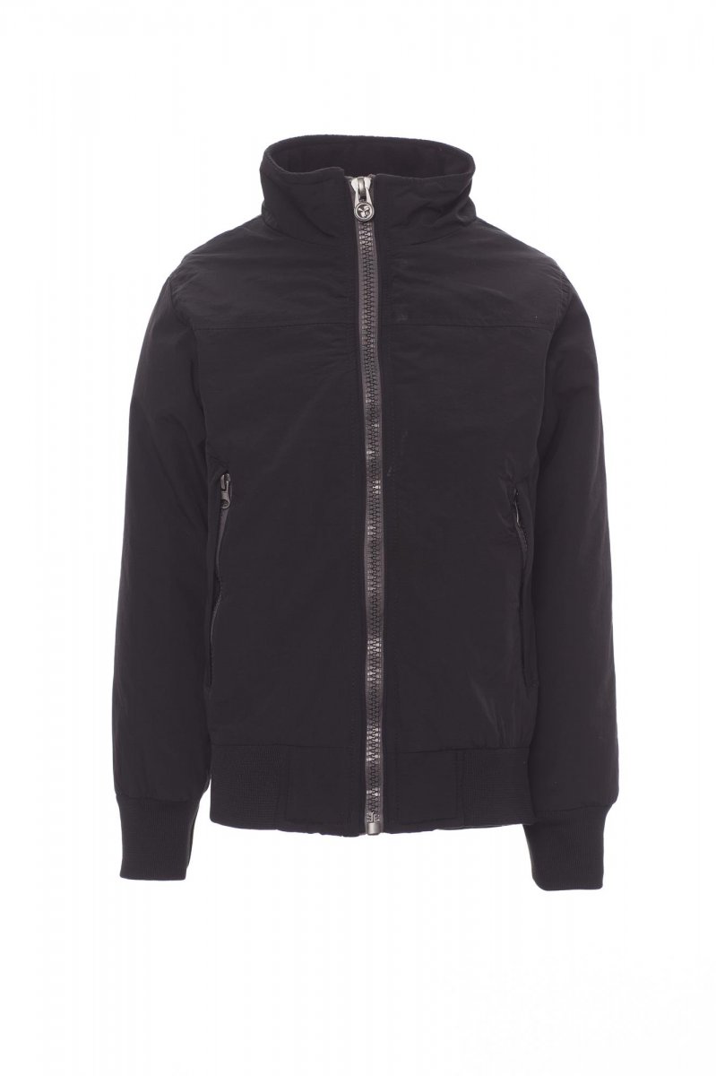 Kinderjas, kunststof rits van 8 mm met metalen runner, elastische ribboorden aan de taille en de manchetten, twee buitenzakken met afgedekte rits. Binnenzijde: gewatteerd, microfleece bij de binnenkraag en het rugpand, een zak met rits voor smartphone met opening voor snoer, rits op de borst en de rug om bedrukken en borduren te vereenvoudigen.
