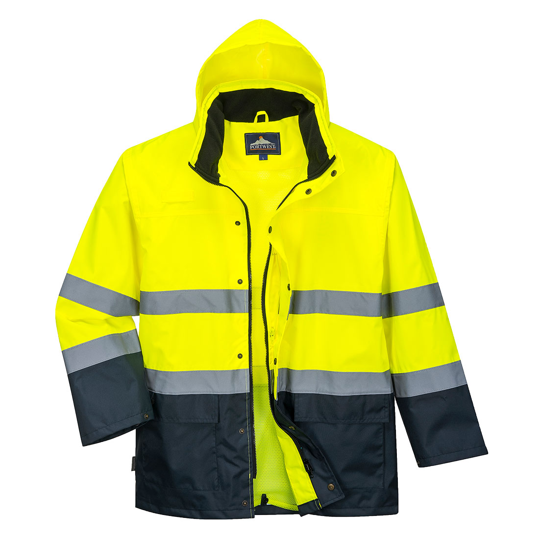 Dit lichtgewicht tweekleuren jack is voorzien van een heel aantal praktische kenmerken waaronder een radiolus, diepe ruime zakken, verstelbare mouwopeningen en de belangrijkste naden zijn dubbel gestikt.