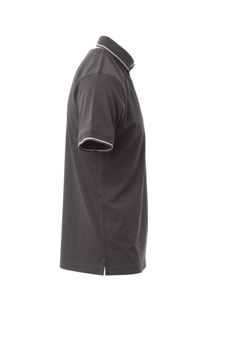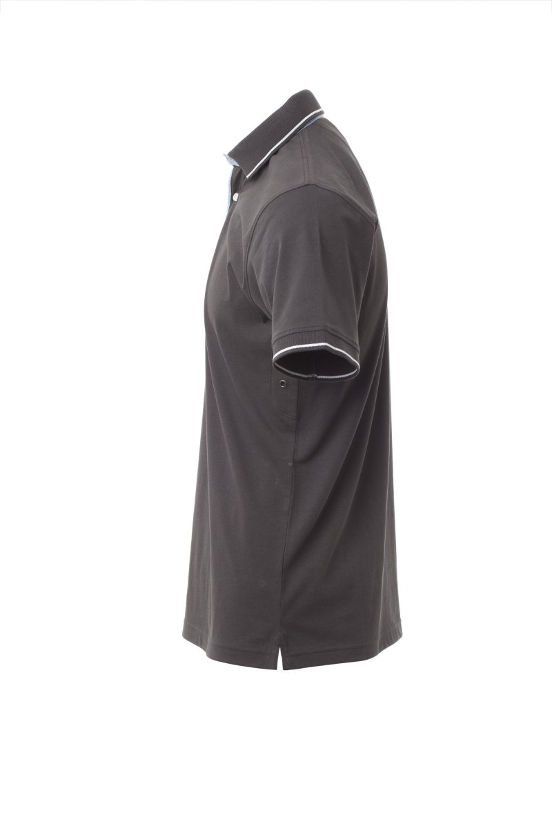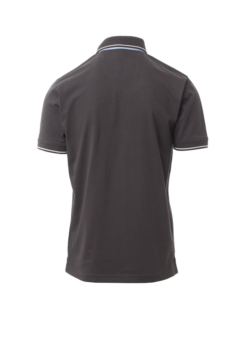 Herenpoloshirt met korte mouwen met 3 witte knopen, binnenkraag, overslag en zijsplitten in Oxfordblauw, ribkraag en mouwboorden met fijne contrasterende strepen, oogjes onder de arm, zijsplitten met versterkte naden, verborgen stiksels bij de kraag, versterkingsband aan de zijkant, elastische naden, band aan de binnenzijde van de nek
