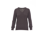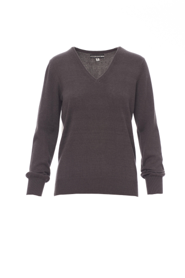 Damestruitje met V-décolleté, fijn geschoren afwerking, opengewerkt breiwerk zonder naden, fijne ribboorden voor de kraagrand, voor de polsen en de randen onderaan.