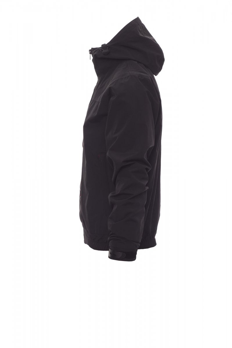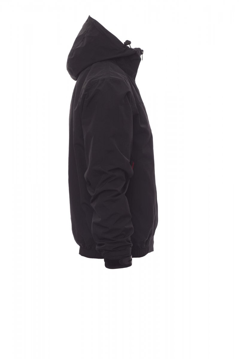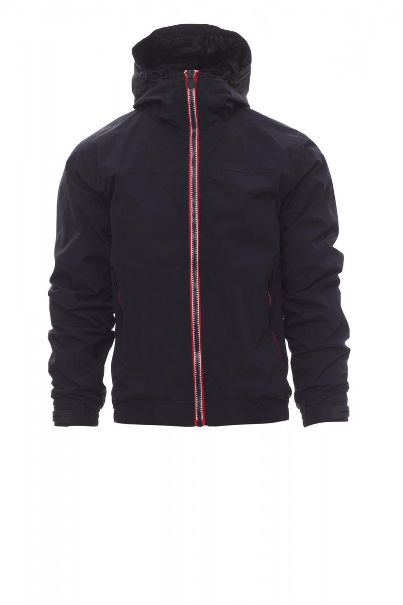 Herenjas, contrasterende rits van 8 mm, gevormde capuchon met twee stiksels en trekkoord, elastiek in de taille, elastische manchetten met verstelbare sluiting van rubber, twee buitenzakken met afgedekte rits. Binnenzijde: niet gewatteerd, netvoering, een zak met rits voor smartphone met opening voor snoer, rits op de borst en de rug om bedrukken en borduren te vereenvoudigen.