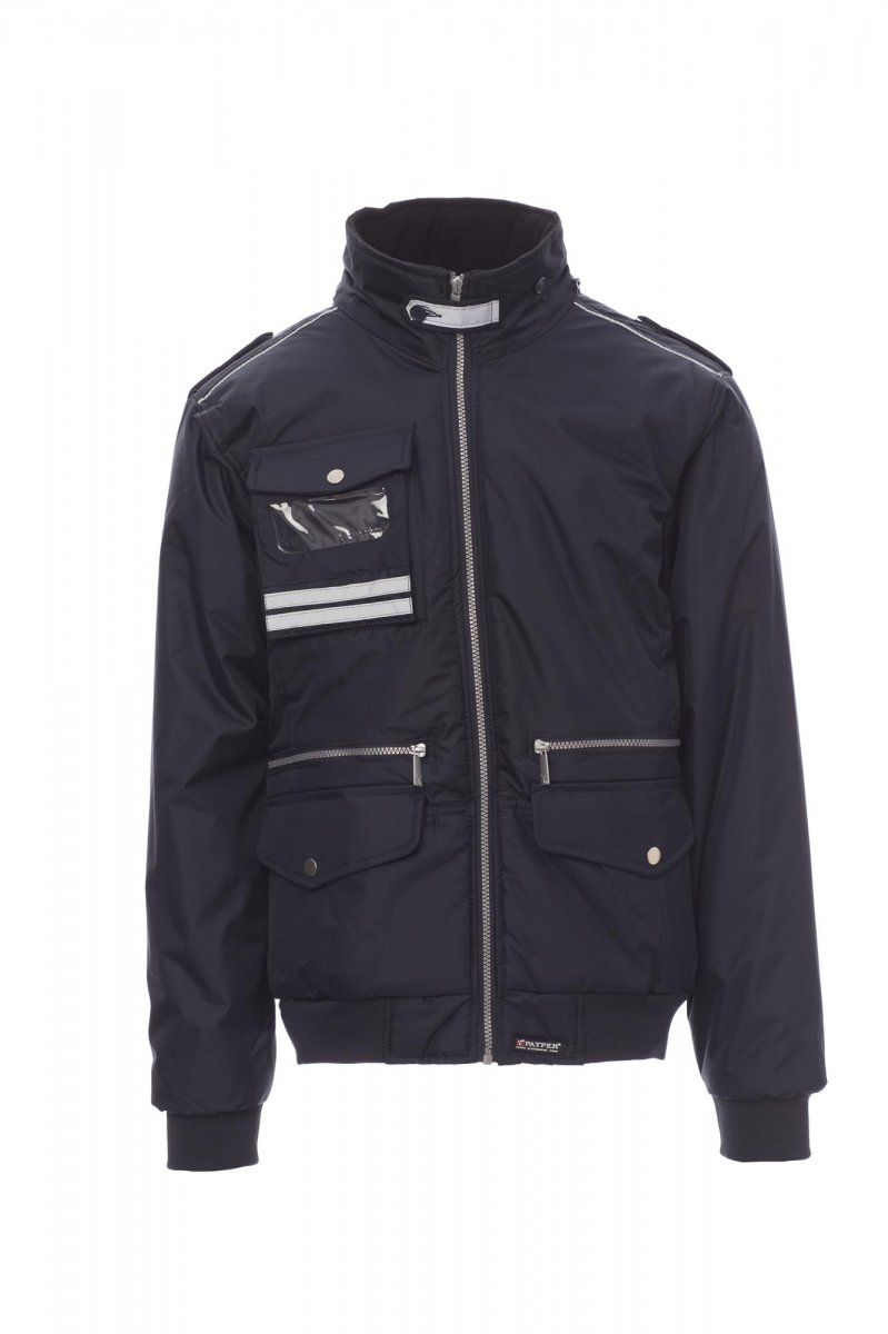 Casual, nauw aansluitende herenjas, met kunststof rits met metalen runner, uitvouwbare capuchon, ribboorden aan de taille en de manchetten, epauletten en kraag met rits, twee zakken met LOCK SYSTEM, twee zakken met rits, een zak met omkeerbare badgehouder, reflecterend pipingband bij de schouders en twee reflecterende strepen op borst en rug. Binnenzijde: gewatteerd, dichte, zilverkleurige voering, rugpand van microfleece, binnenkraag van fleece, een binnenzak.