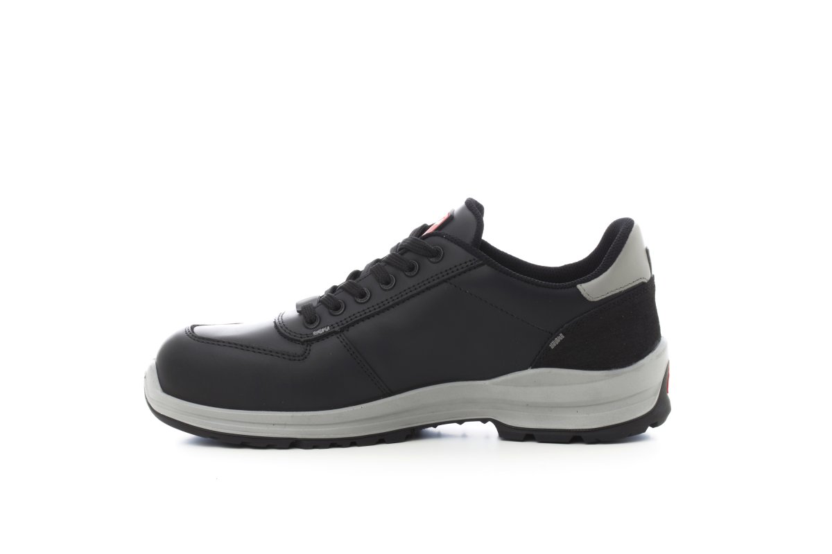 Lage veiligheidsschoen voor heren, bovenleer in waterafstotend, ademend leer, ademende voering vanbinnen (over het hele binnenoppervlak) bestand tegen wrijving, 6+6 metalfree oogjes, hakbescherming in pampas korrel met reflecterend inzetstuk, schoenneus in gegoten aluminium, verwijderbare inlegzool Ortholite X40 016, zool in stofplaat, gecertificeerd tegen perforatie, cambreur tegen verzwikking, onderneus in hoefijzervorm, binnenzool in zeer lichte polyurethaan, schokdemping MASTER BALANCE in PU polyether met grote stevigheid en uitgebalanceerde densiteit, zool XTRAIL GRIP in TPU met hakbescherming en neusbescherming.