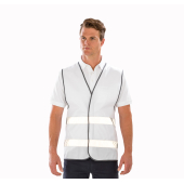 100% polyester. Lichte, mouwloos hesje met een hoge zichtbaarheid voor kinderen. Reflecterende stroken van 50 mm op het lichaam. Omboorde randen in grijs polyester. Handige klittenbandsluiting vooraan.