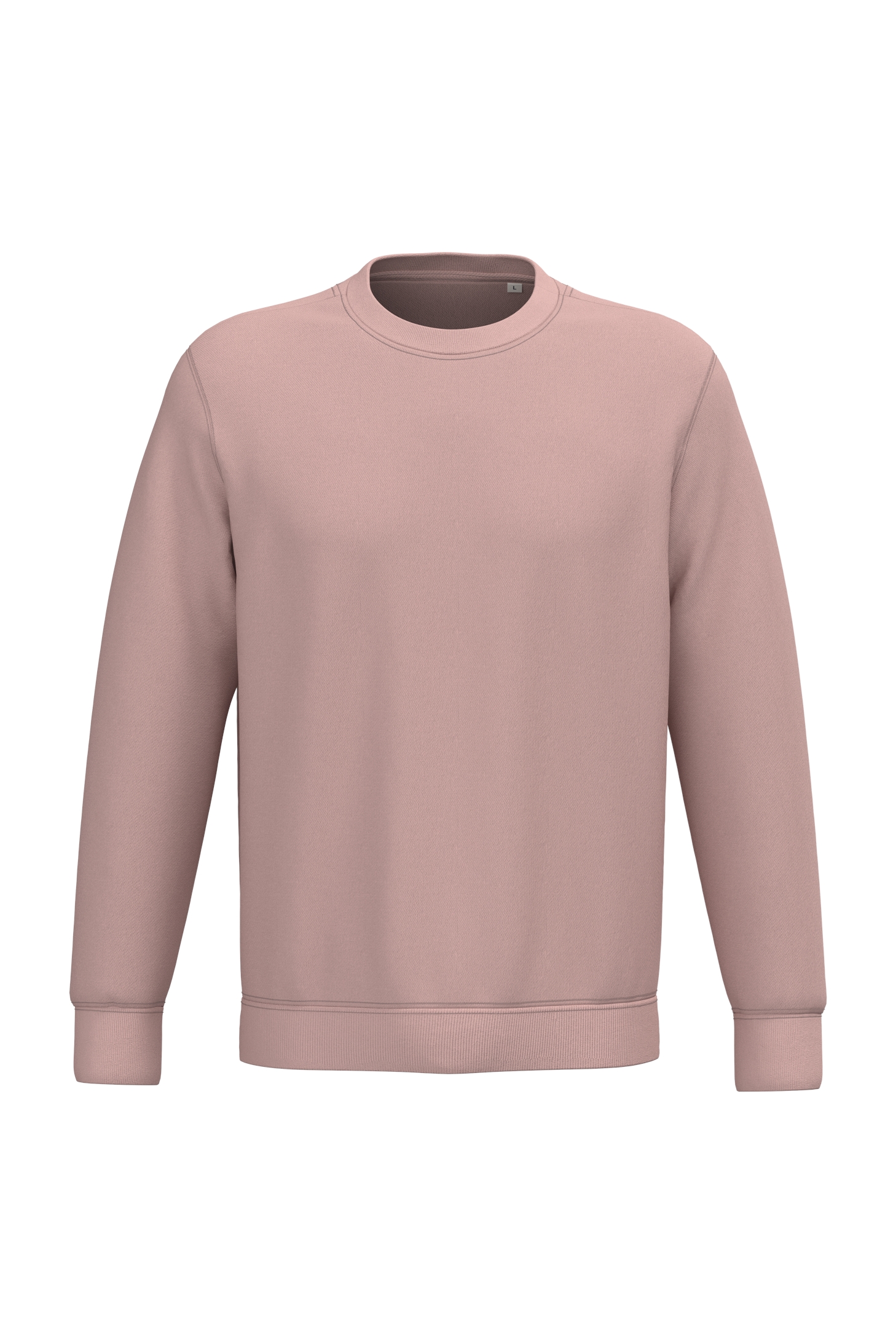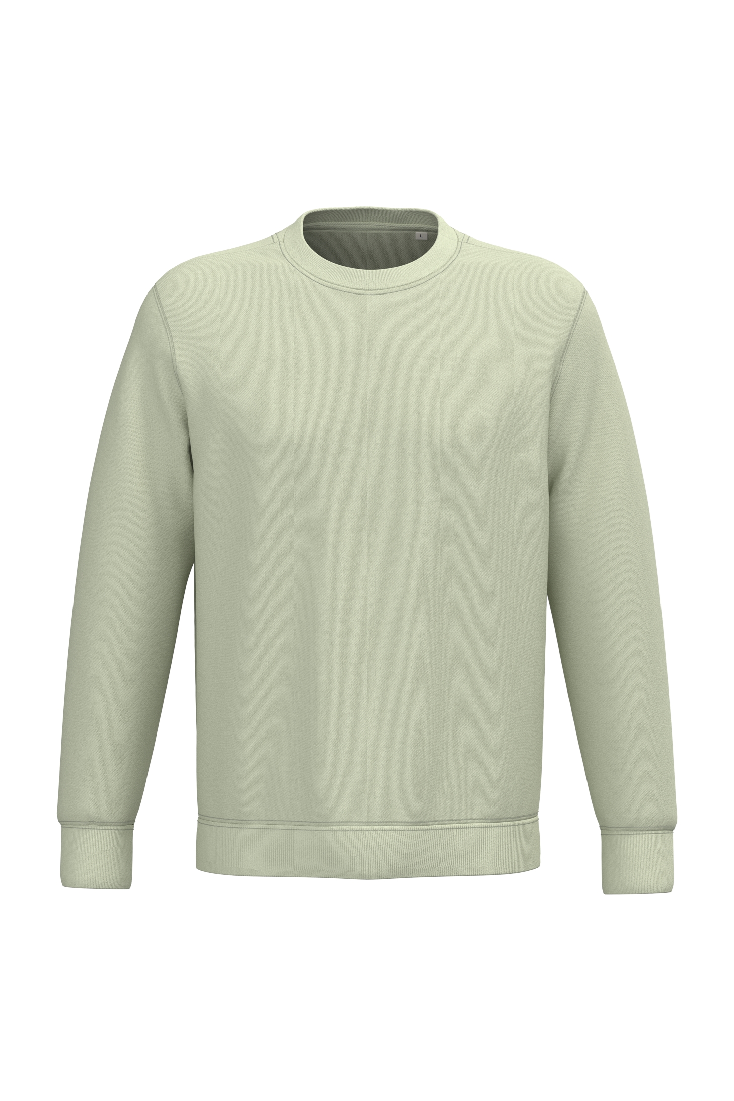 85 % biologisch katoen / 15 % post-consumer gerecycled polyester. Gekamd en ringgesponnen katoen. Fitted pasvorm. Enzymgewassen. LSF-geborsteld fleece LSF 3 draden. (Low Shrinkage Fleece: voorgekrompen fleece). Halvemaan op de achterkant. 1 x 1 ribboord aan de hals, de zoom en de mouwboorden. Dubbel stiksel aan de mouwboorden, de mouwinzetten de zoom. Enkel stiksel aan de halsopening. Nektape aan de binnenzijde achterkant.
