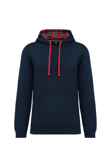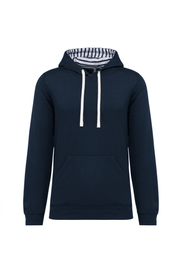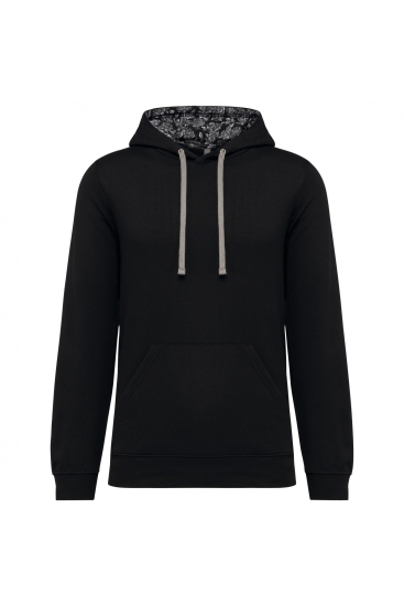 80% gekamd katoen / 20% polyester. Aan de binnenkant geborsteld fleece 3 draden. Fitted pasvorm. Rechte mouwen. Kangoeroezakken. Halvemaanvormige halsopening voor eenvoudige personalisatie van het merk aan de binnenkant van de kraag. Afwerkingen van 1x1 ribboord aan de mouwuiteinden en de boord. Gevoerde capuchon met een themastof in bedrukt jerseykatoen en contrasterende aanrijgkoordjes. Tear-away merklabel. Gecertificeerd STANDARD 100 by OEKO-TEX®N° CQ1007/7, IFTH.